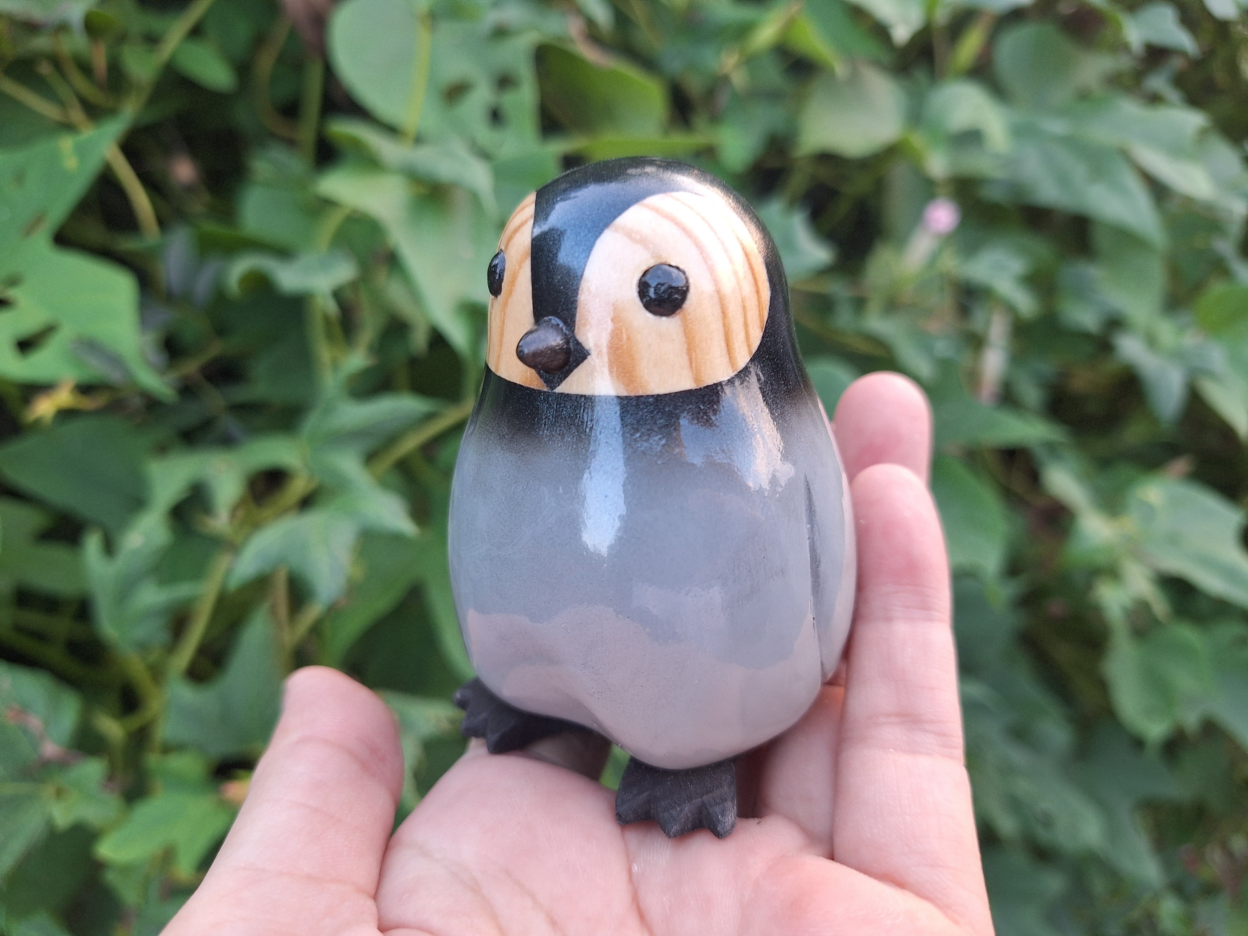 お母さんの足のすき間からちょこっと顔を出しそうな 子ペンギンです。とても人気があります。