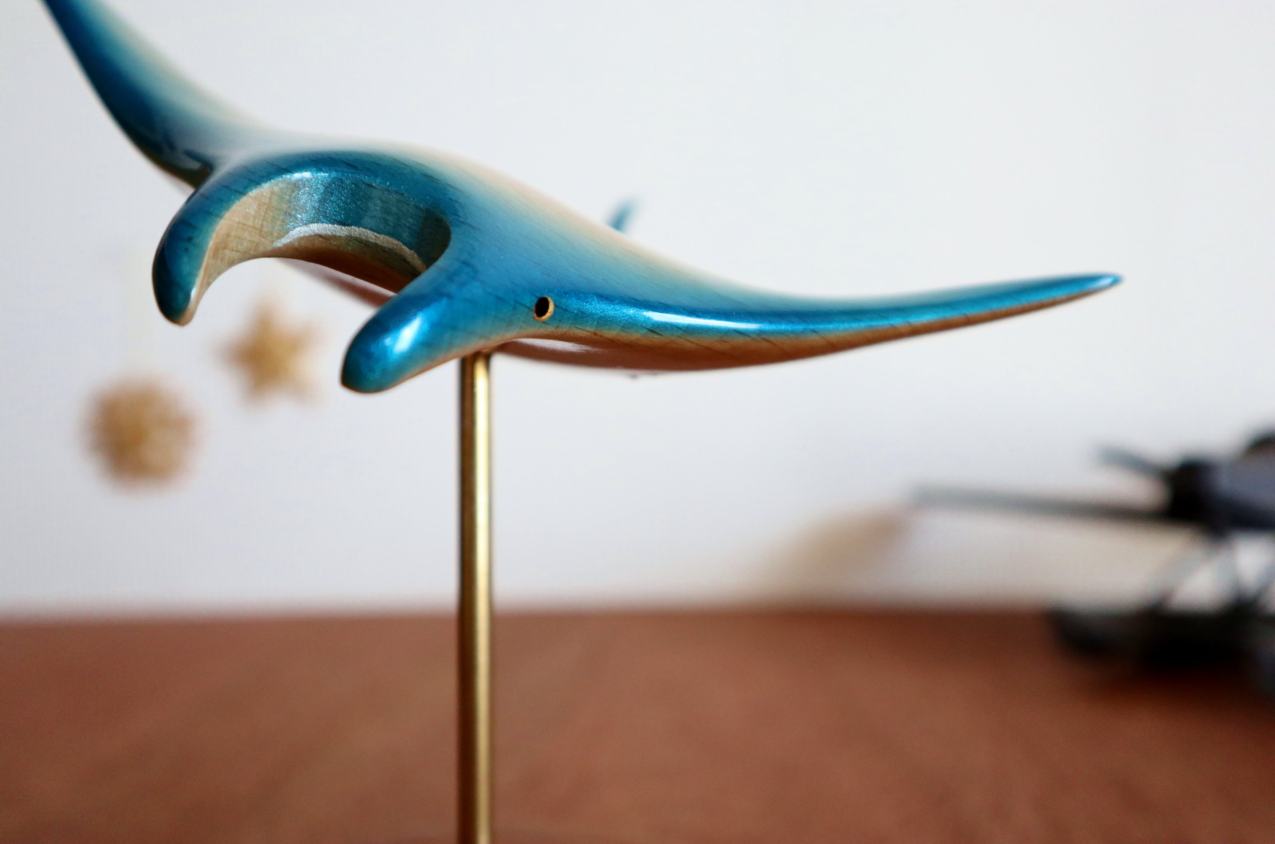 マンタ(エイ)が海の中をスイスイと飛ぶように泳ぐ姿をスタンディング・デコイにしました。