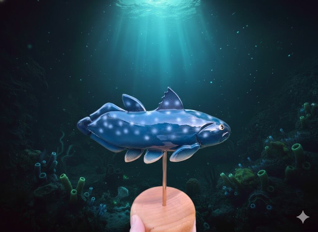 生きた化石と言われるシーラカンス。魚類から両生類へ進化する過程のままの姿ではないか、と言われています。