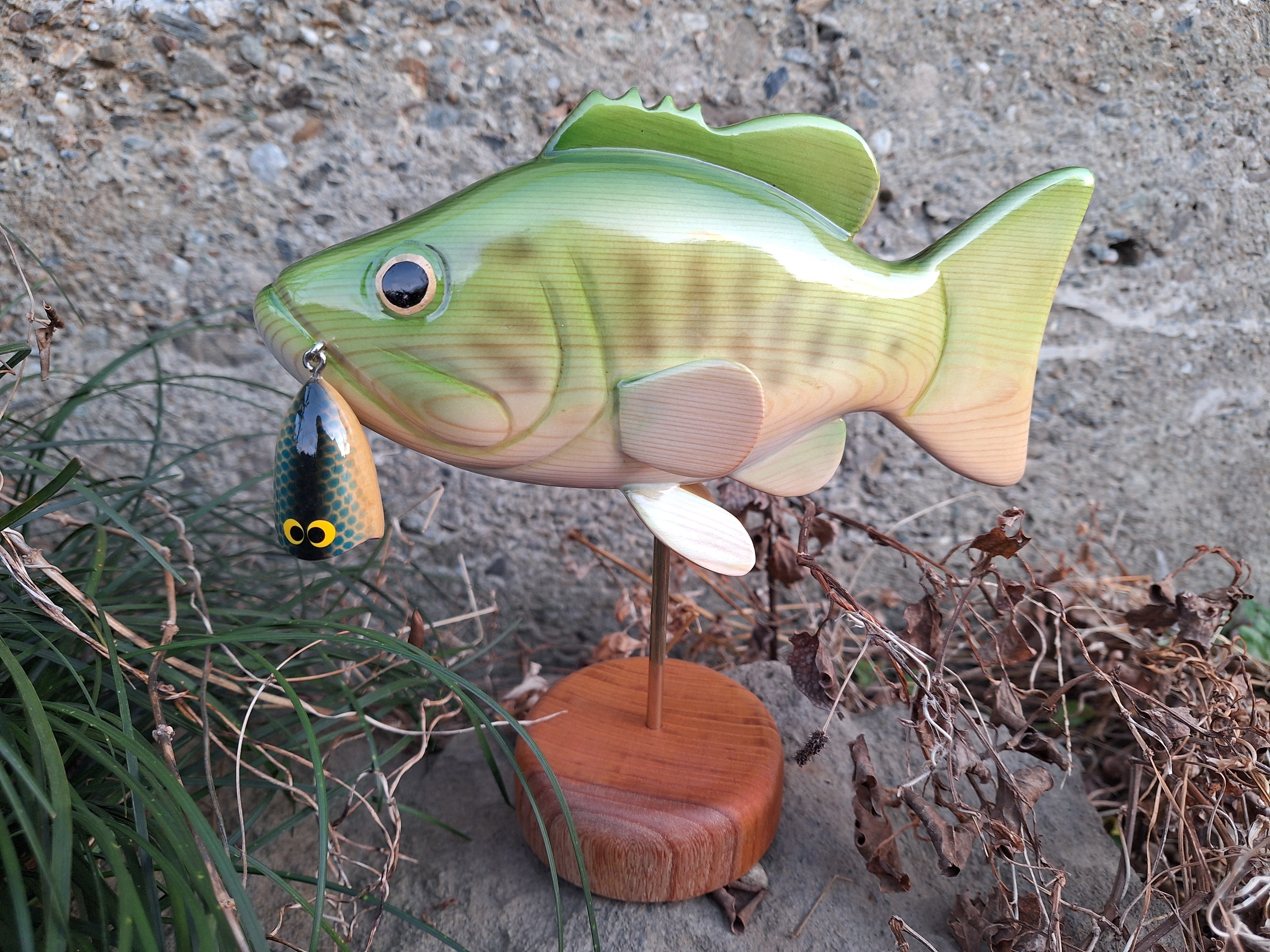 ルアーをくわえたバスのスタンディングが仕上がりました。