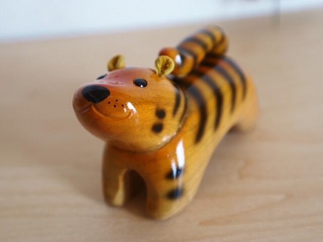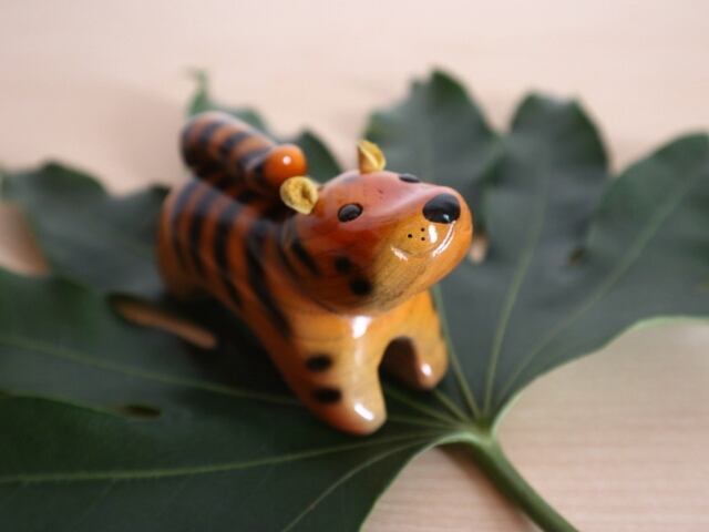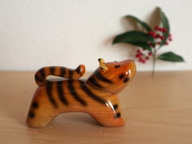 鼻先と尻尾をつんと上げたご機嫌な笑顔のかわいいトラが仕上がりました!