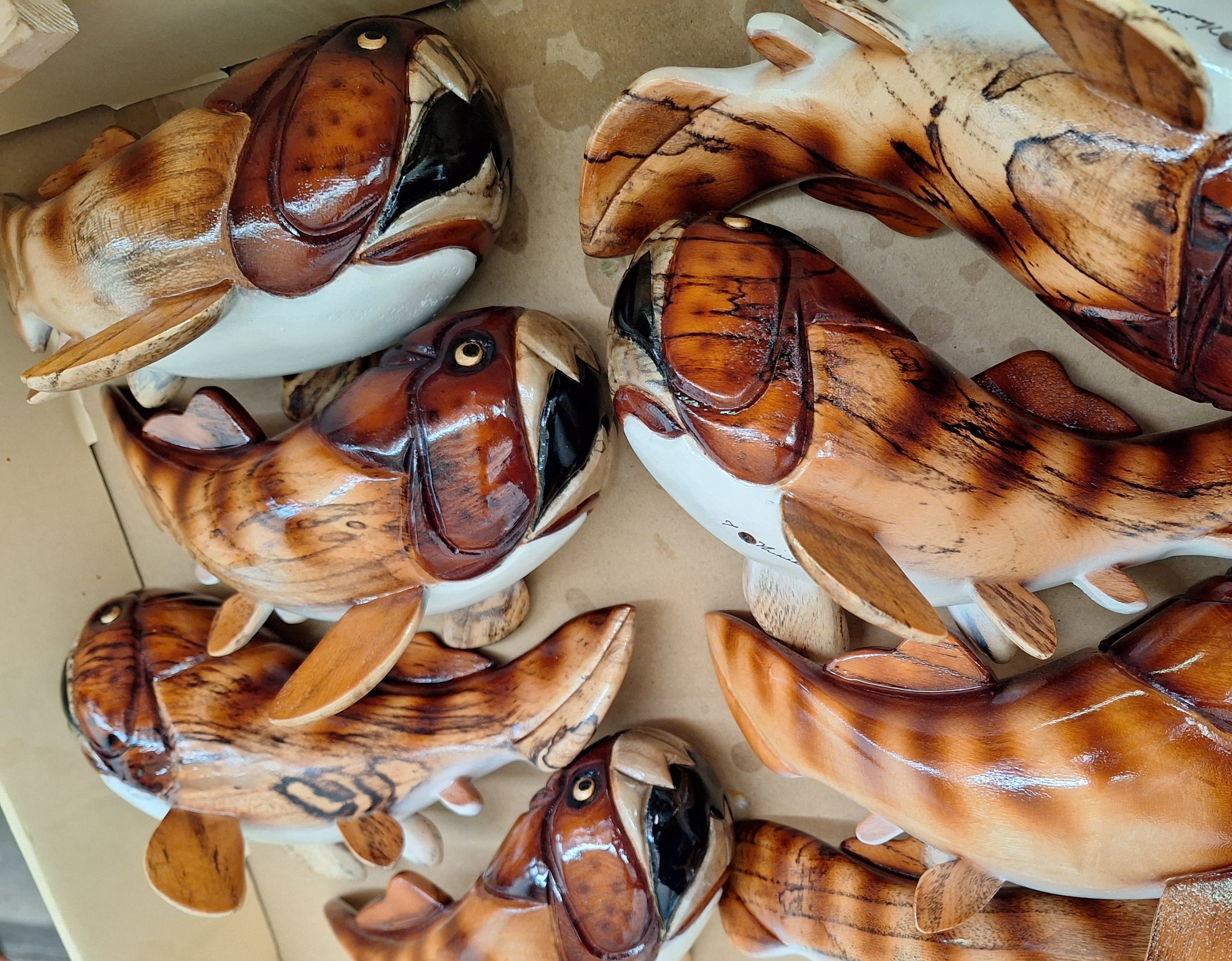 水中で素早く獲物を捉えていたとのことでヒレは大きめに制作しました。大きな歯と甲冑のような出で立ちに大変興味をそそられます。